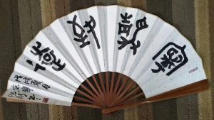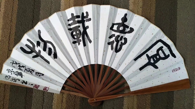 折扇很小,所以在上面作画写字则更能体现出书画老师的笔墨功夫,笔墨往往不能太多,而又必须营造出一种令人眼前一亮的气象,这便需要拿出更深的功夫,与武术中所说的“拳打卧牛之地”有着异曲同工之妙。