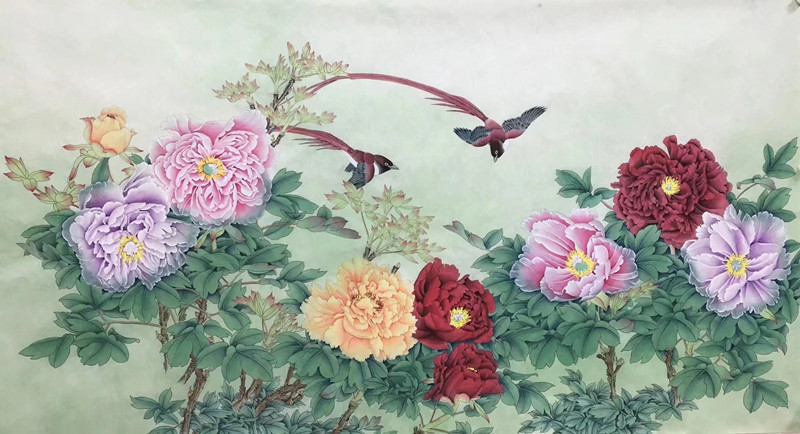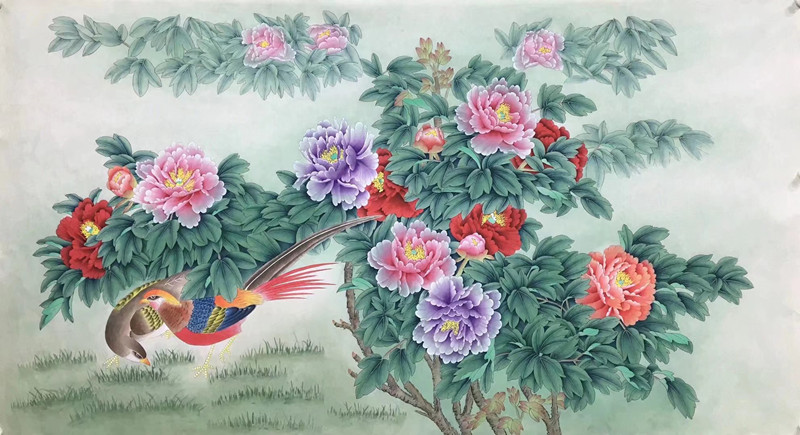 国色天香 富贵满堂  六尺整张  180x96cm  画家许国华作品
