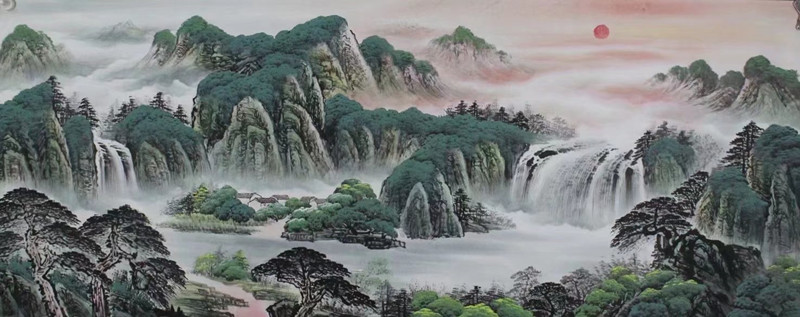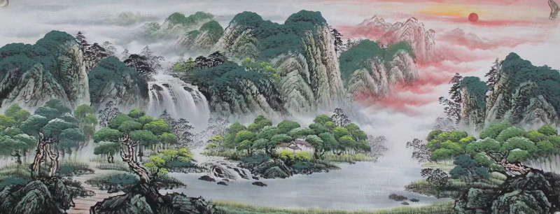 旭日东升 小六尺 180x70cm 画家李晓海作品 青山绿水