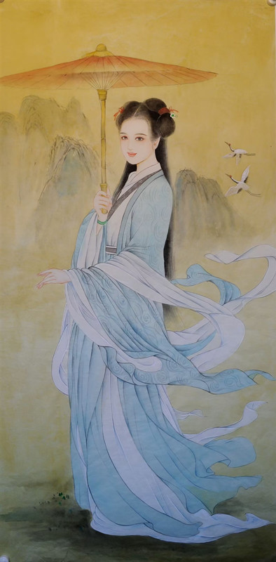 工笔仕女图 四尺整张 138x68cm 画家韩梅作品