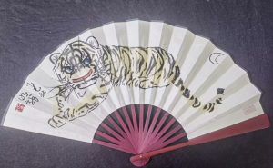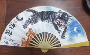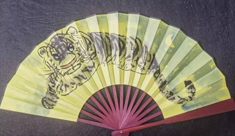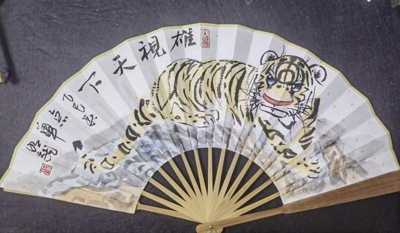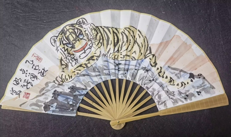 画家吴明龙作品—乖乖虎折扇(乙巳年秋)