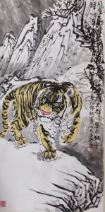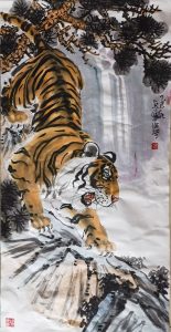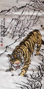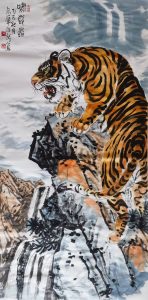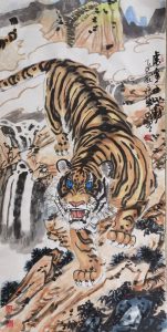 吴明龙,中州人氏,号虎公,毕业于中国美术学院,师承陆俨少、吴山明、刘江诸师,中国美术家协会会员。以画虎见长,另辟蹊径、独树一帜,突破了中国传统的表达方法,以书法入画,线条潇洒飘逸,老虎作品给人耳目一新的感觉。对于山水,吴明龙亦悉心钻研、笔耕不辍,多次远赴青藏高原写生,所创作的雪域高原风情的泼墨大写意山水作品刚劲俊朗、磅礴有力、舒展洒脱、自然魁伟,震动当代画坛。